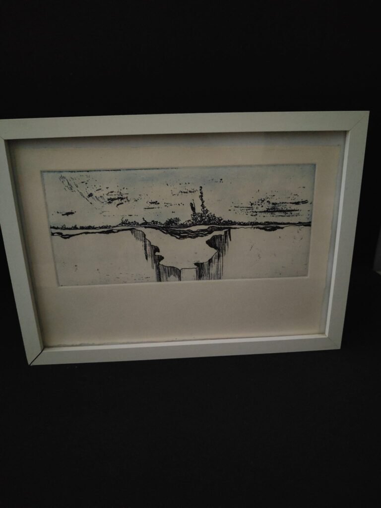 Exilio» es un grabado realizado con la técnica del aguafuerte que representa una poderosa imagen de separación y desplazamiento. La obra muestra el país natal y, más allá, la frontera, simbolizando la barrera física y emocional que deben cruzar quienes se ven obligados a abandonar su hogar en busca de una nueva vida. La composición es una reflexión sobre la dificultad de dejar atrás las raíces y la crítica a la existencia de fronteras que dividen a las personas. Poesía