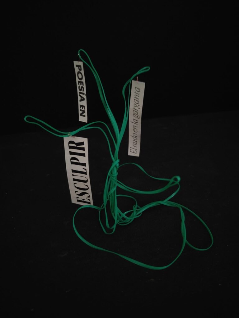 árbol es una obra de arte moderno abstracto que emplea la técnica del biomorfismo matérico. La pieza está compuesta por alambre verde generando una estructura similar a la de un árbol para reinventar el collage liberándolo de la cárcel del 2D. Poesía